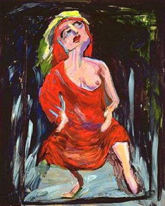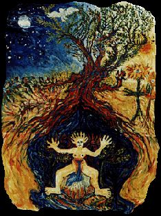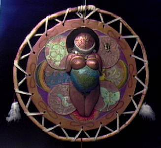 She is no longer fertile, but she is rejoicing in her femininity and sensuality. (Her womanness) She is literally bursting out of the negative image that women in menopause are associated with. The picture was taken outside in an altar-like setting